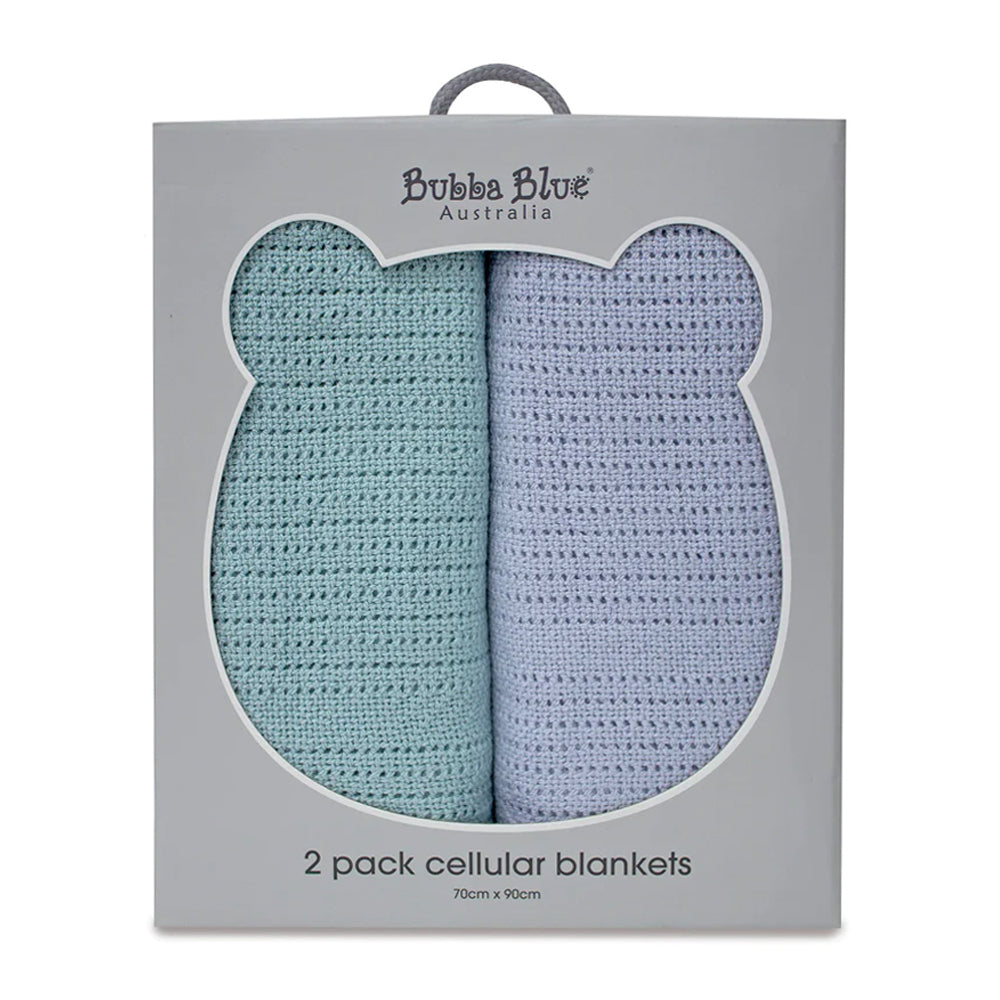 2PK Bubba Blue Nordic 70x90cm Cellular Blanket 0-12m - Dusty Sky/Mint