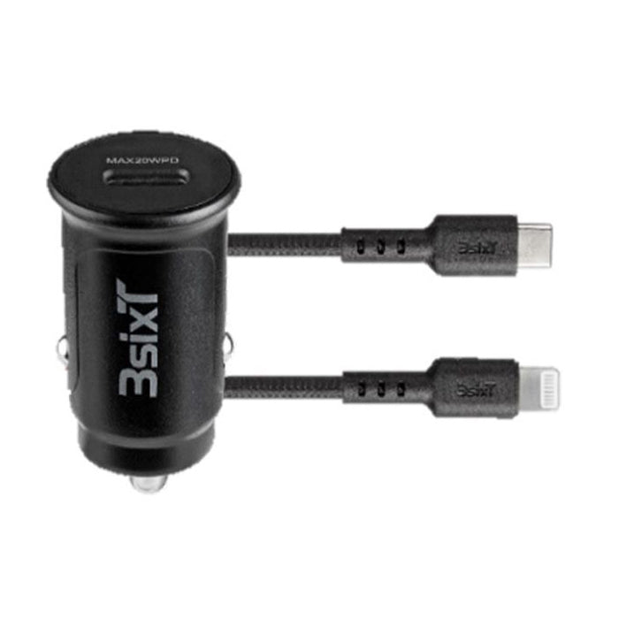 3sixT Tough 20W Car Charger w/ USB-C to Lightning MFI-Certified Cable - Black