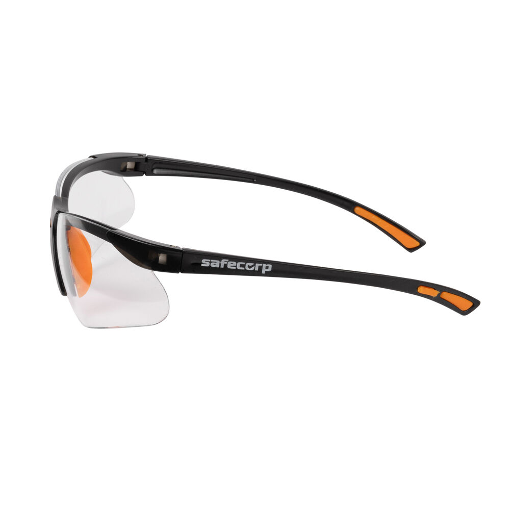 Safecorp Clear PPE Safety Specs Glasses Anti Fog Anti Scratch Black/Orange