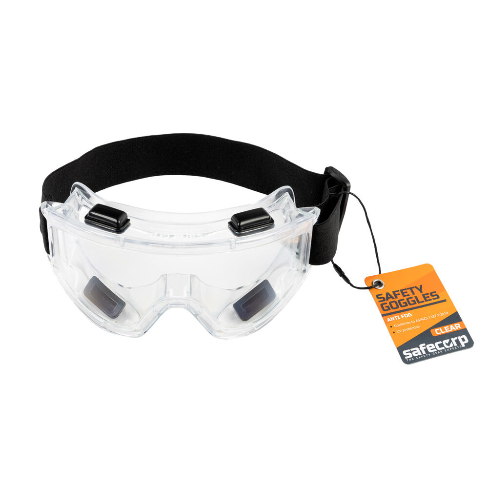 Safecorp Clear PPE Safety Goggles Anti Fog UV Resistant Direct Vent Black
