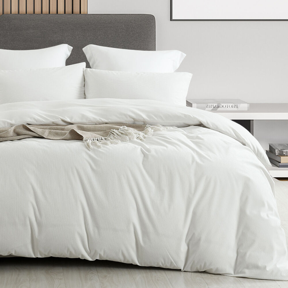 Royal Comfort Velvet Corduroy Quilt Cover/Pillowcase Set King - White