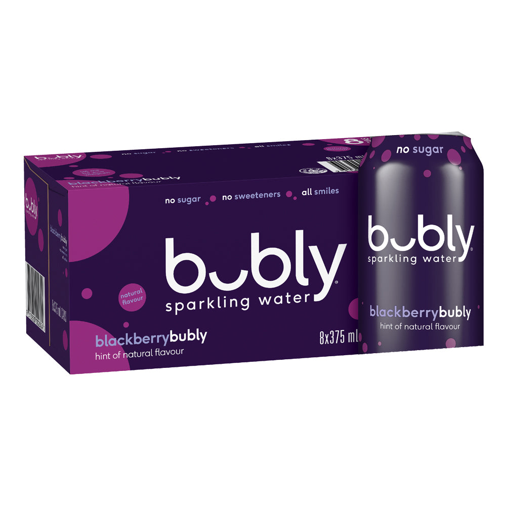 8pc Bubly Blackberry Flavoured Sparkling Water Drink Cans 375ml