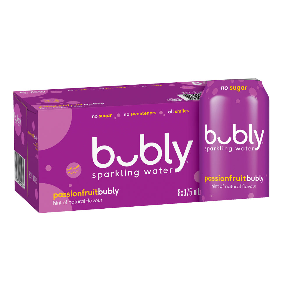 8pc Bubly Passionfruit Flavoured Sparkling Water Drink Cans 375ml