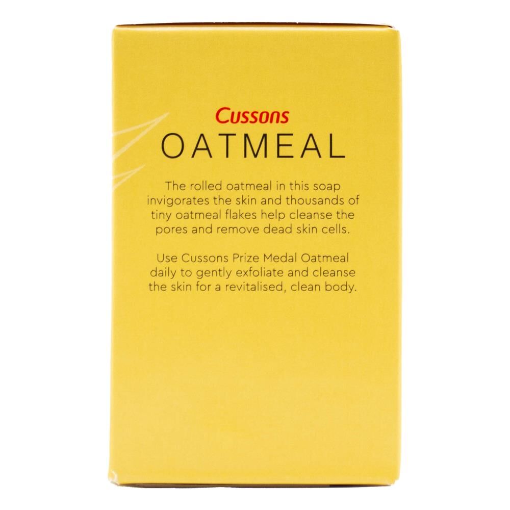 The rolled oatmeal in this soap invigorates the skin and thousands of tiny oatmeal flakes help cleanse the pores. Use Cussons Prize Medal Oatmeal daily for a tingling, clean body.