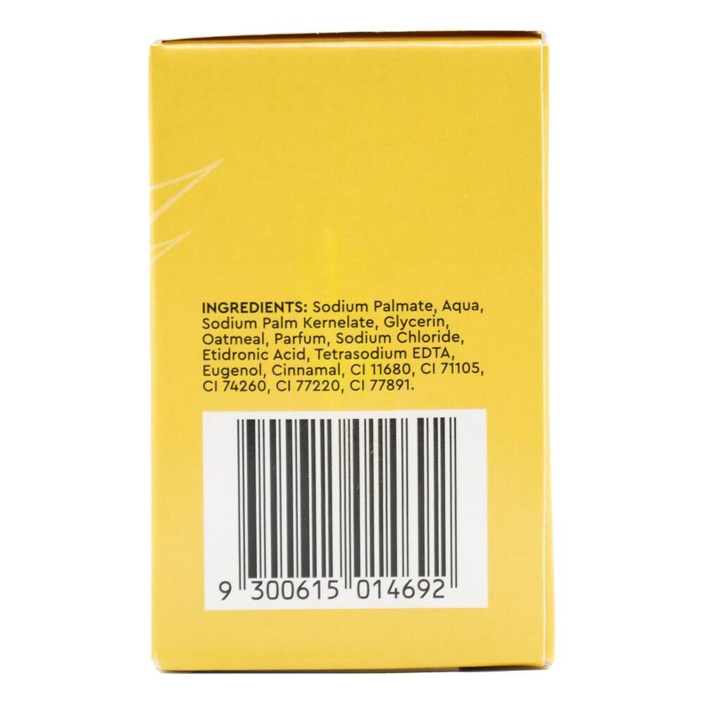 Sodium Palmate, Sodium Palm Kernelate, Aqua, Glycerin, Sterilised Talc, Parfum, Oatmeal, Sodium Chloride, Tetrasodium EDTA, Etidronic Acid, Cinnamal, Eugenol, lsoeugenol, CI 11680, CI 71105, Cl 74260, Cl 77220, Cl 77891.
