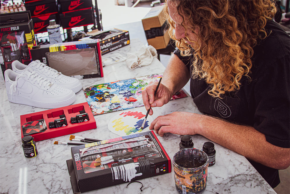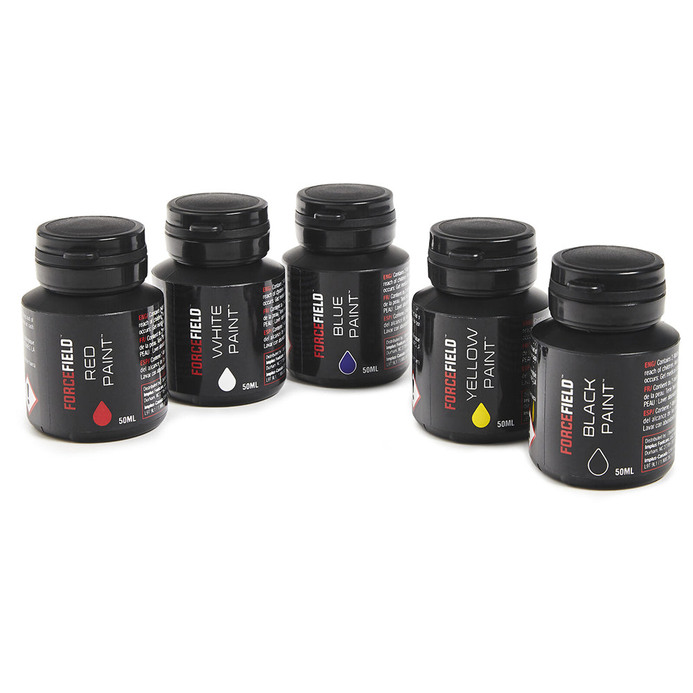 The ForceField Customization Paint Kit™ comes with everything you need to customize your sneakers or gear. The ForceField Customization Paint Kit(TM) includes 5 paint colors, 5 paint brushes in a range of sizes and styles and a how-to guide.Includes: