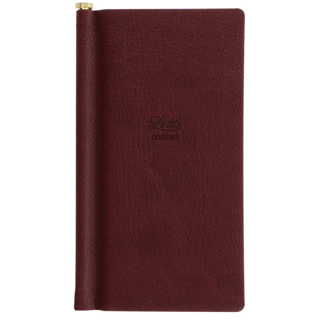 Premium Slim Pocket Address Book with a chocolate textured leather-look cover. Featuring 159 cream coloured alphabetical index pages for contacts and includes a bespoke ballpoint pen.