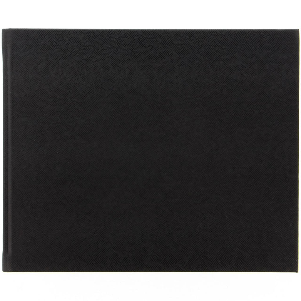 Premium Quarto landscape Guest Book with deluxe black leather-look cover. Featuring 128 pages of plain cream coloured paper for your events and special occasions.
