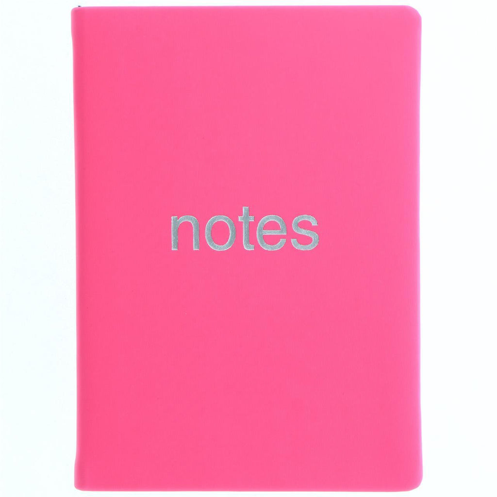 Fluorescent A6 Notebook with a pink luxury micro texture cover. Featuring 189 pages of warm white premium ruled paper for daily notes and journaling. Lightweight, compact and an ideal gift.