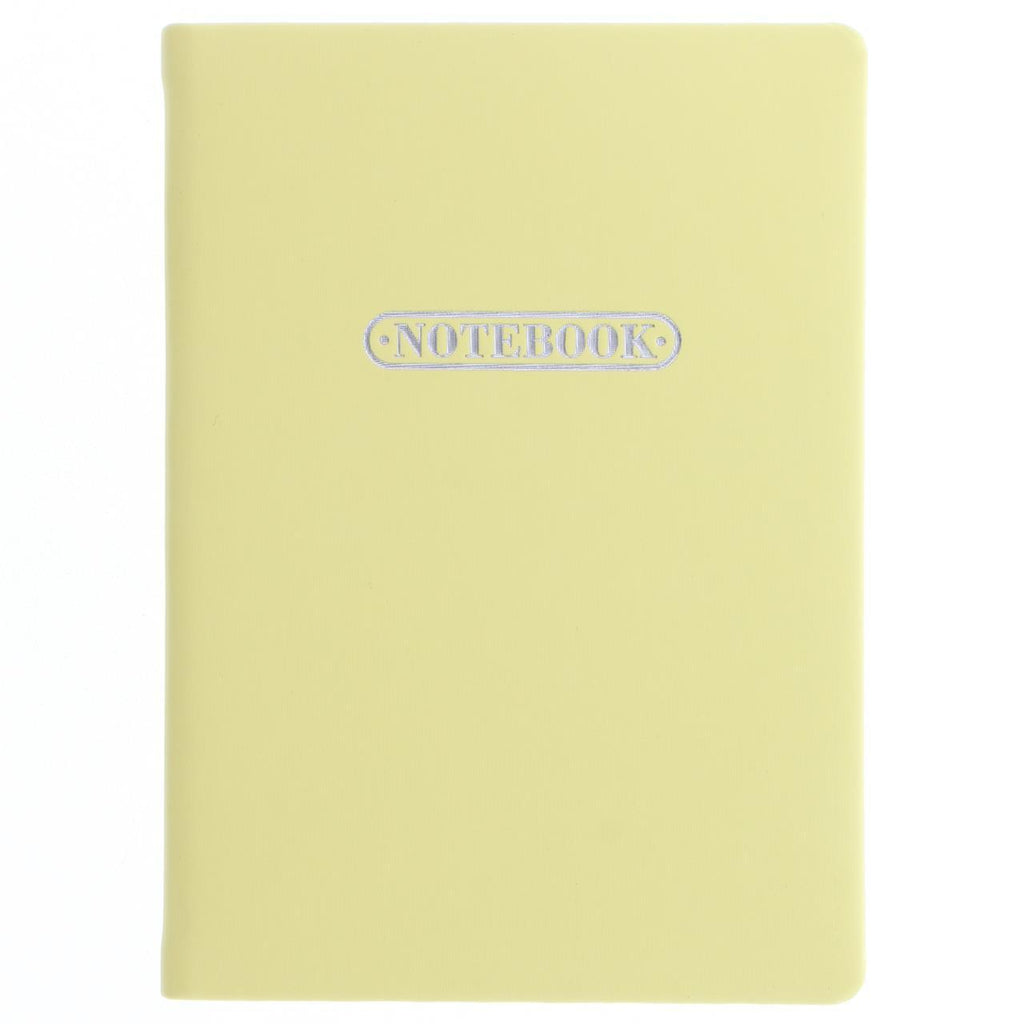 Contemporary A6 Pastel Notebook with a lemon luxury micro texture cover. Beautifully finished with a silver foil motif, featuring 189 pages of warm white ruled paper ideal for daily notes and journaling.