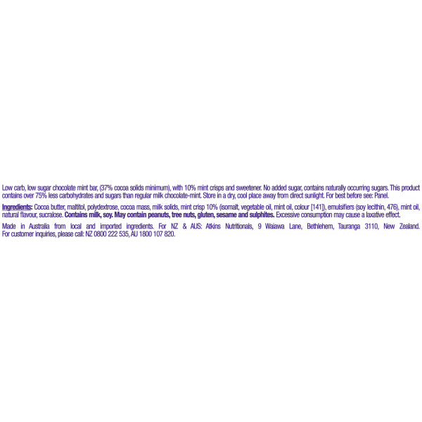 The Atkins Milk Chocolate Mint Crisp bar is perfect for all you chocolate mint lovers. Made with crunchy mint crisps and surrounded by creamy milk chocolate, this bar is the perfect low sugar treat!