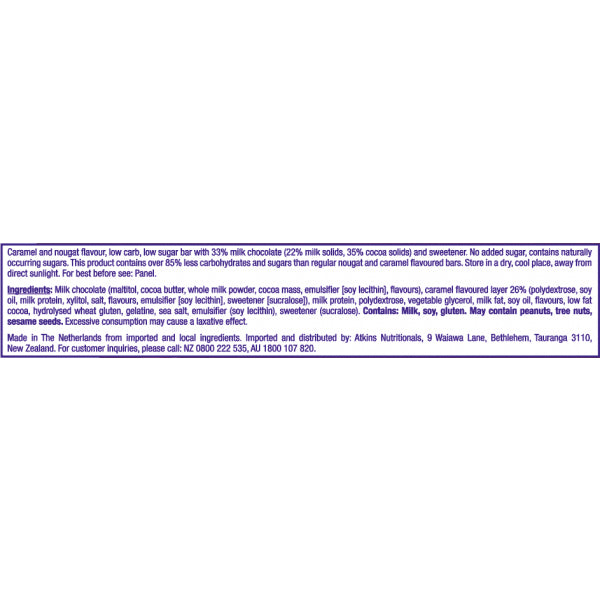 This delicious treat bar combines creamy caramel with soft nougat covered in a thick layer of chocolate and all with only 1.4g of sugar! With Atkins bars, you really can satisfy your sweet cravings any time of day and still maintain your healthy low sugar lifestyle.