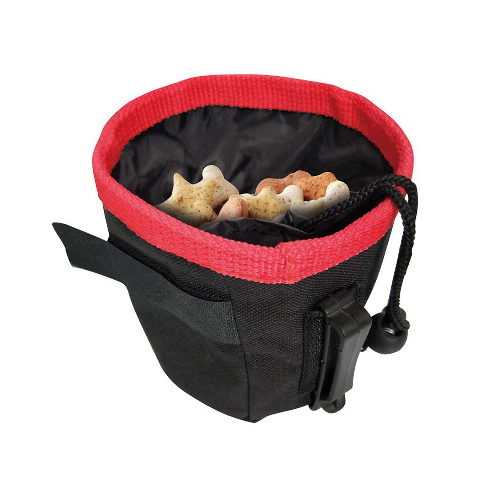 The M-PETS Nazca Treat Bag in Red and Black is the perfect accessory for pet owners who love to take their furry friend on outdoor adventures.