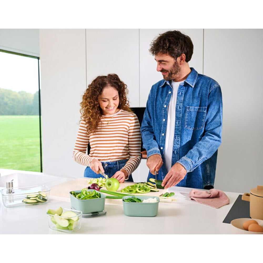 Multi bowl Cirqula 350 ml / 12 oz in Nordic sage. This small green bowl has a capacity of 350 ml / 12 oz and is perfect for storing or taking humus, small sauces or baby snacks. The Cirqula collection from Mepal has been designed specifically for a complete 'circle of use'. The food in these bowls can be stored in the freezer or fridge, heated up in the microwave (without the lid) and can then be served (directly) at the table. The Cirqula is made of indestructible material and the transparent window in the lid allows you to see the contents of the bowl clearly. The innovative, flexible lid is airtight and leak proof. The food will therefore stay fresh longer and can be kept in the bowls and taken along when you are on the go. The Mepal Cirqula bowls are practical and easy to store away because they can be stacked when they are filled and nestled together when they are empty. Suitable for fridge, freezer, microwave and dishwasherLeakproof - Stackable and nestable - Easy to clean - Complementing microwave lid available