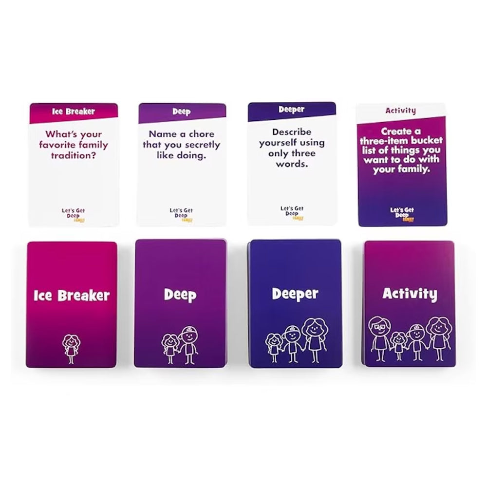Bust out this game as an ice breaker at your next family gathering, bring it along to game night, even play around the dinner table for a fun spin on family time. This conversation starter game is sure to be a blast regardless of where you play it, or who you play it with. Great for getting everyone talking, bonding, and laughing about iconic family moments.