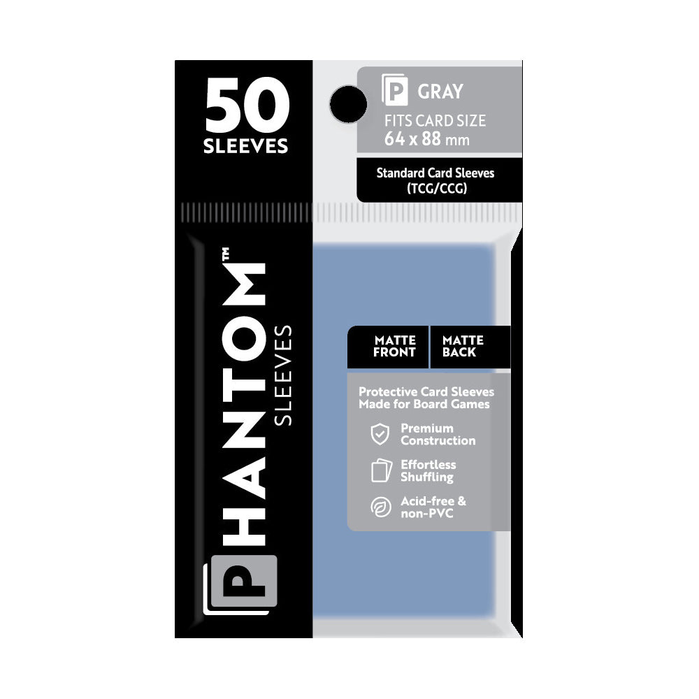 Phantom Sleeves in Gray (64mm x 88mm) offer optimal protection for your trading cards. With a matte finish on both sides, these sleeves provide a sleek, professional look while minimizing glare. Perfect for collectors and gamers alike, each pack contains 50 durable sleeves designed to keep your cards safe and secure.