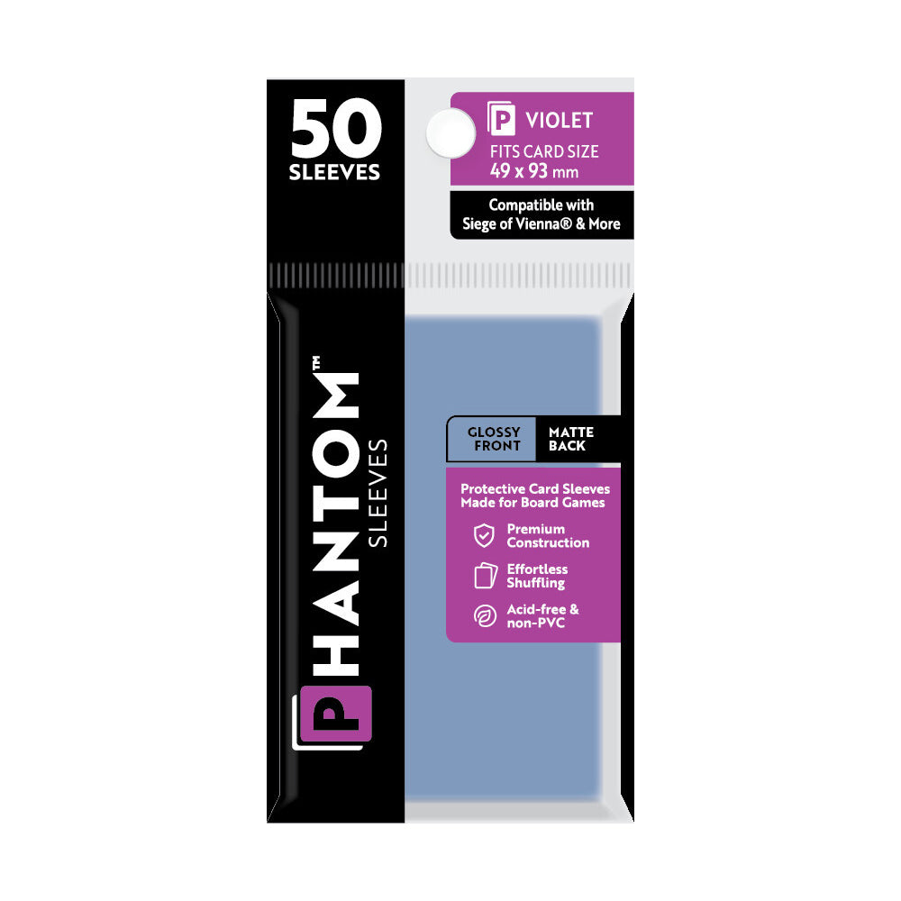 Phantom Sleeves: Violet Size (49mm x 93mm) offer a premium solution for protecting your cards. Featuring a perfect fit and a stylish violet color, these sleeves come in a pack of 50 with a mix of glossy and matte finishes, ensuring both durability and a sleek aesthetic for your collection.