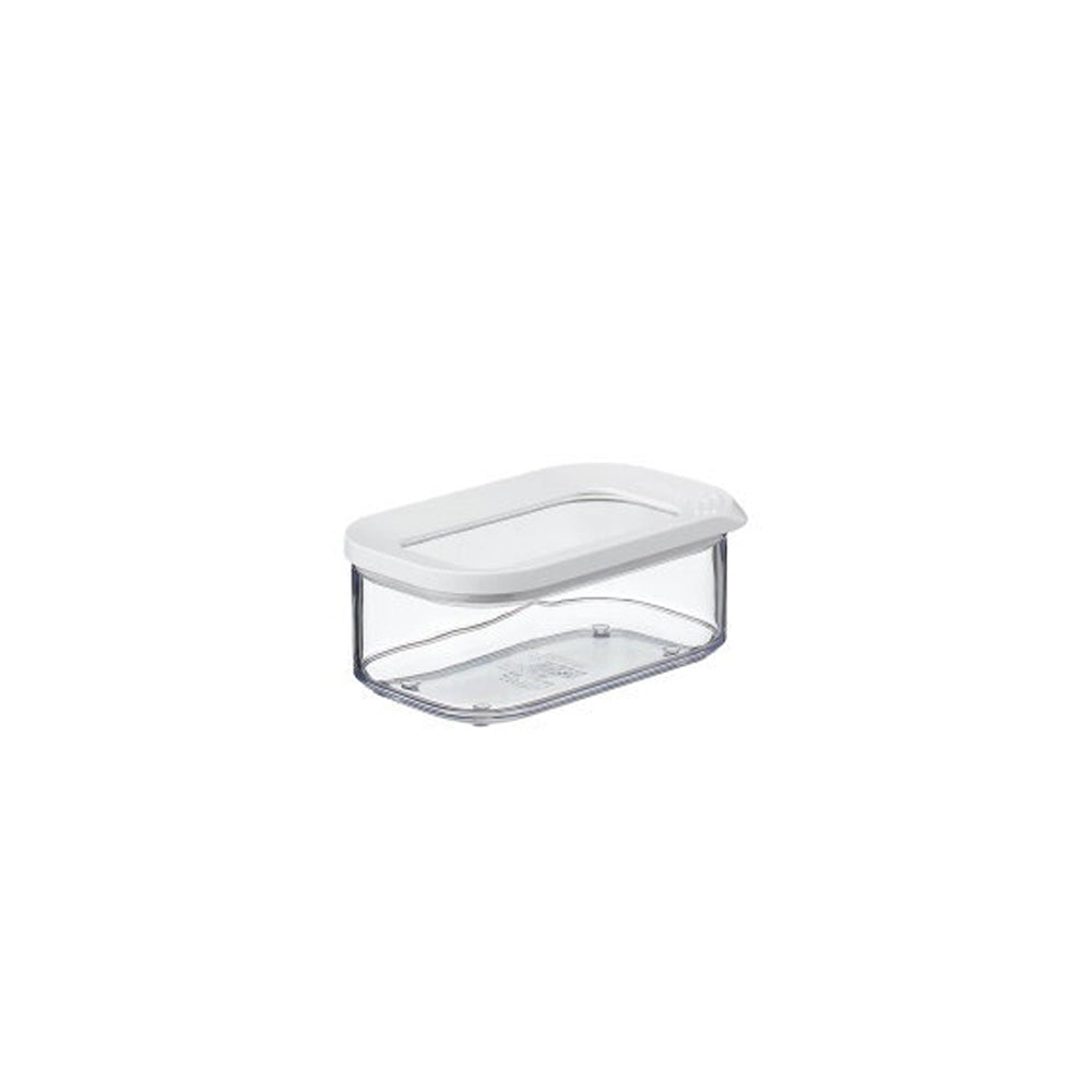 Storage box Modula 425 ml / 14 oz has a transparent lid with a white ring. This small Mepal rectangular (425 ml / 14 oz ) box has rounded corners and its transparent lid allows you to see its contents instantly, even in your kitchen drawer. The white ring provides a perfect fitting which makes this box ideal for storing dried food such as pasta, flour, biscuits or packets of soup. The Modula storage boxes from Mepal are available in a variety of sizes and shapes, are easy to open, stackable and dishwasher safe. Outstanding practical features combined with a stylish design, the Modula has it all! Transparent (can clearly see its contents)StackableMade in Holland
