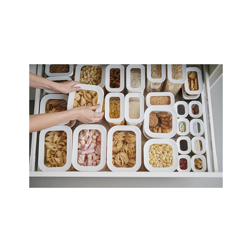 Storage box Modula square 1250 ml / 42 oz , has a transparent lid with a white ring. This square storage box has rounded corners and its transparent lid allows you to see the contents of the box (1250 ml / 42 oz ) instantly, even in the kitchen drawer. The white ring provides a perfect fitting which makes this large Modula storage box ideal for storing dried food such as pasta, flour, rice and sugar cubes. The Modula storage boxes from Mepal are available in a variety of shapes and sizes, are easy to open, stackable and dishwasher safe. Outstanding practical features, combined wit a stylish design, the Modula has it all! Transparent (can clearly see its contents)StackableMade in Holland