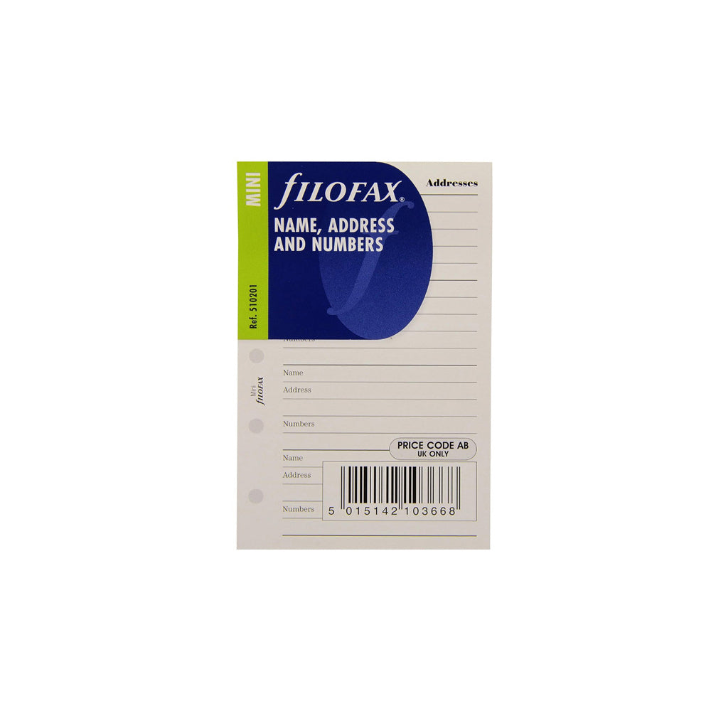 Keep note of your contacts with this name, address and telephone number refill for your Filofax mini organiser. Contains 20 sheets.