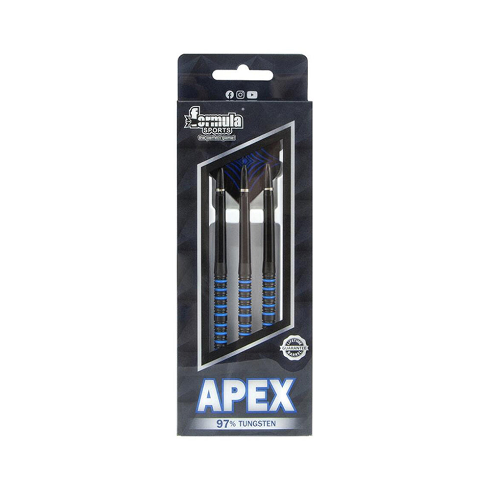 Formula Sports has gone to the APEX and created a stylish dart with a 97% Tungsten barrel. Apex features a slim tapered barrel that will allow for tighter grouping and a striking black & blue coloured ringed grip.
