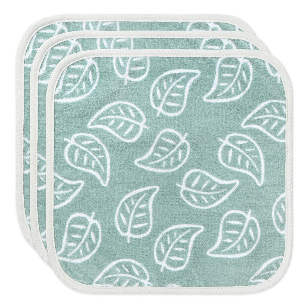 Make bath time extra adorable with our 3 pack Woodland Adventure face washers. Each soft and gentle washcloth features a soothing aqua ground leaf print and matching binding. Crafted from premium high-quality fabrics that ensure durability for long-lasting use.