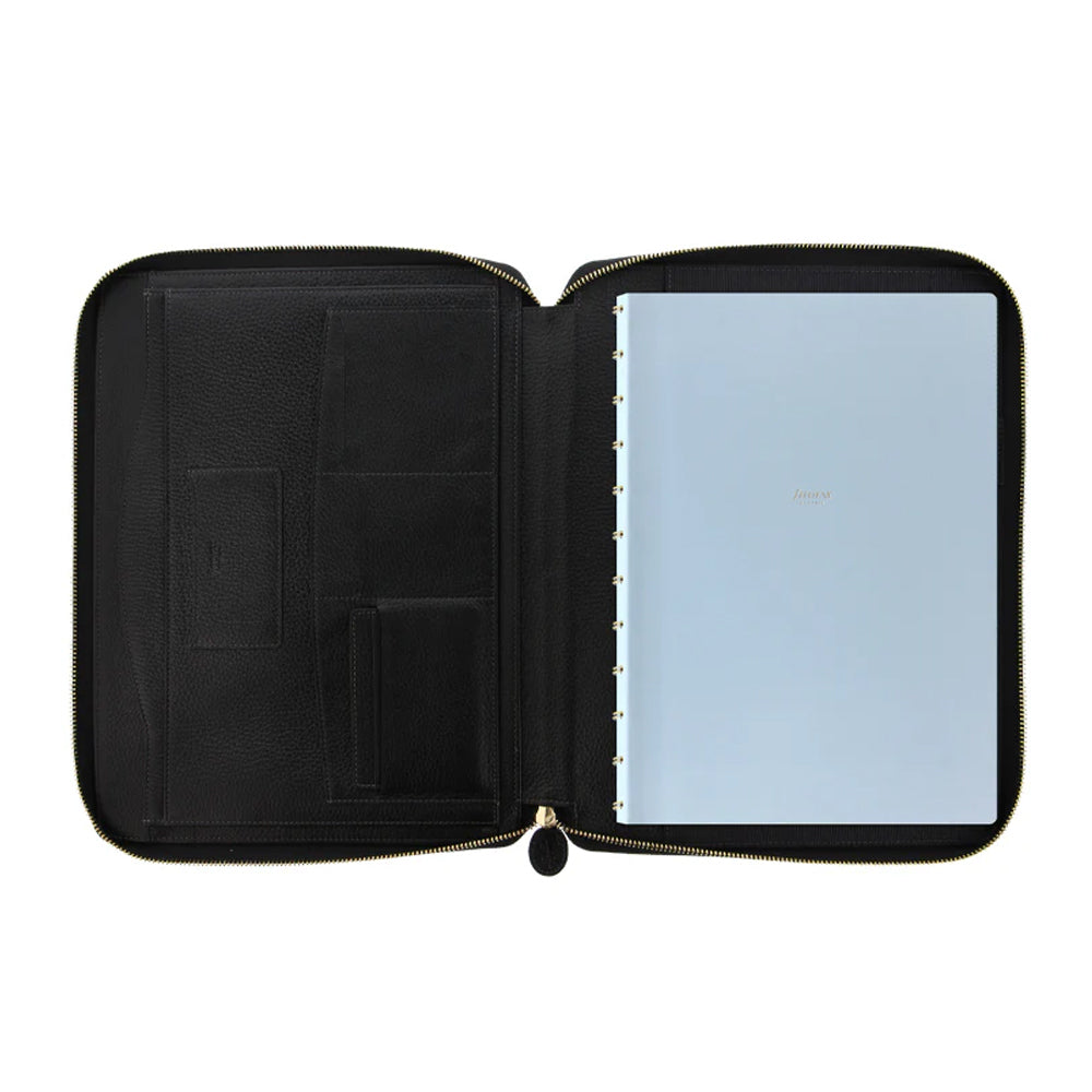 Filofax Classic Stitch A4 Writing Folio Notebook Soft Zip Leather - Black