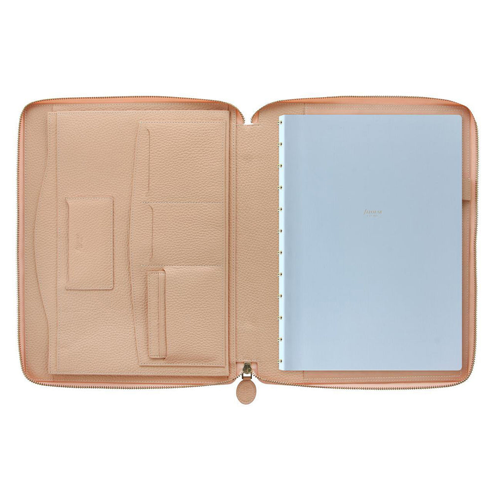Filofax Classic Stitch A4 Writing Folio Notebook Soft Zip Leather - Peach