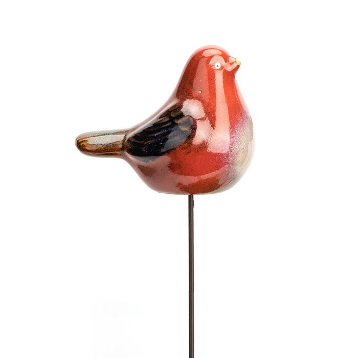 Garden Ceramic 11.5cm Birds on Stick Outdoor Decor - Red