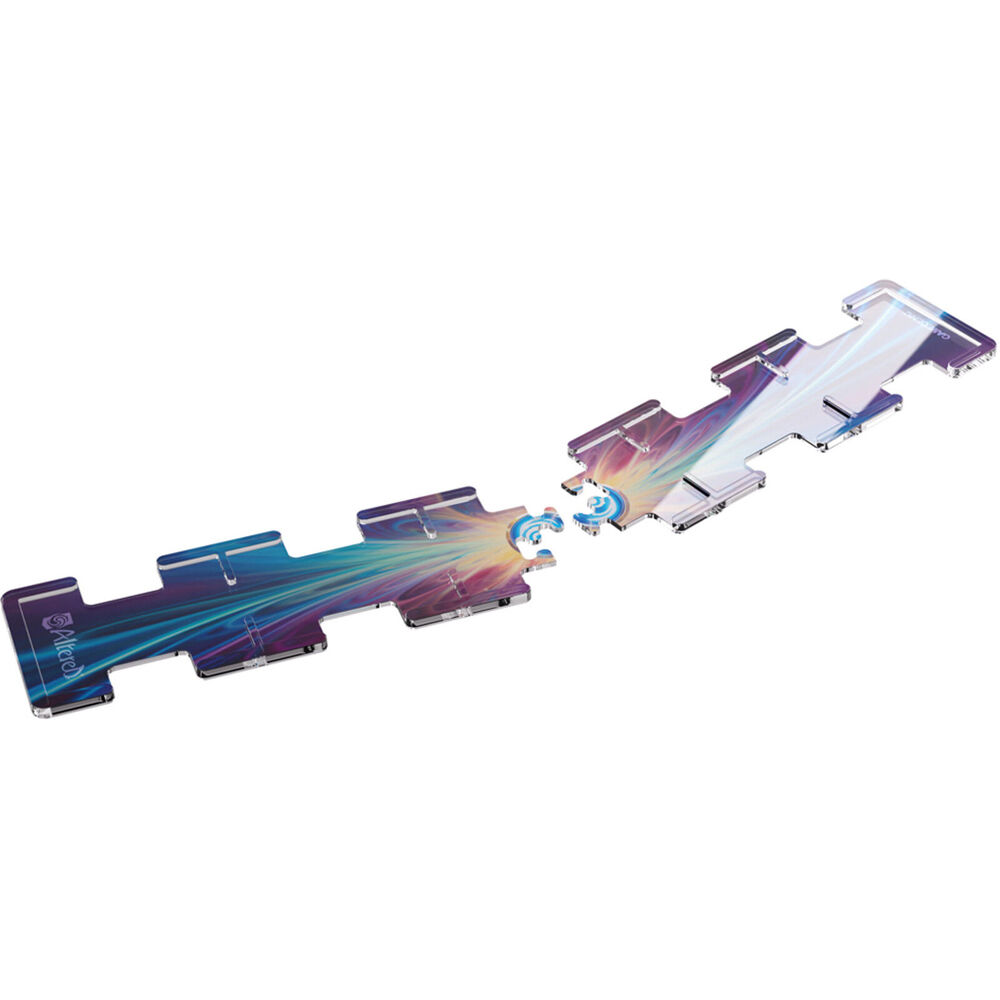 The track is designed to hold the game’s Adventure cards securely in place – even with sleeves. Precise notches grant easy access and make flipping the cards easy. The high-quality acrylic material combined with the beautiful art are ideal for an upgraded gaming experience. The track is delivered in two pieces, ensuring easy assembly and compact storage – for example with our Cards’ Lair PRO 1000+ Altered® Edition. The Premium Adventure Track is perfect for all enthusiastic players of Altered®.