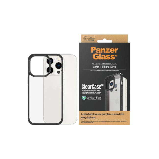 PanzerGlass Clear Phone Case For Apple iPhone 15 Pro - Black