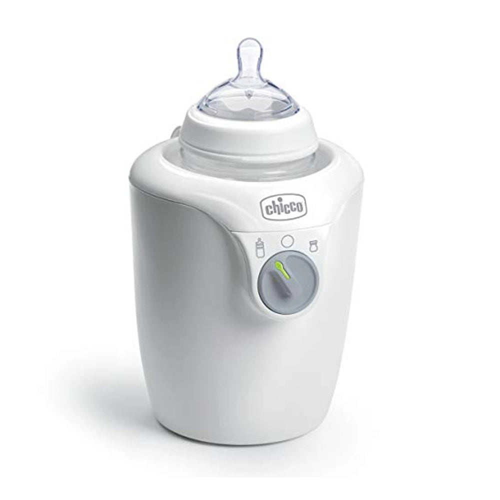The compact Chicco Bottle and Baby Food Warmer quickly and easily warms baby bottles and food jars. A basket insert for placing and removing smaller containers is included.