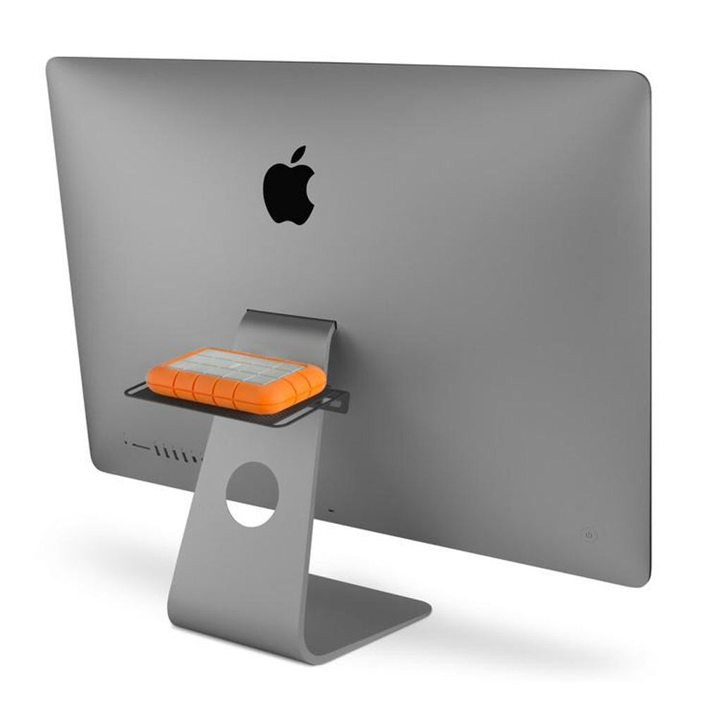 BackPack hangs on the back or front of the L-shaped desk stand on iMacs and Apple Displays, using gravity and two simple, adjustable clips. Because the BackPack uses gravity to stay in place, it will not leave any scratches or marks on your machine.