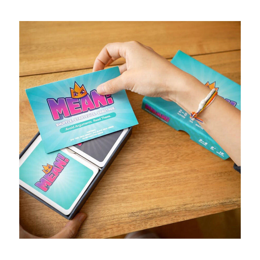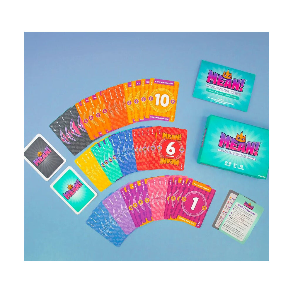An epic showdown of sly moves, MEAN! introduces an all new style of clear-your-hand gameplay driven by “Card Direction”, where cards are played either going up or going down in value. You can use special cards to change the direction to block your rivals, force strategic hand swaps or wield the mighty MEAN! card to punish your frenemies and take them down.