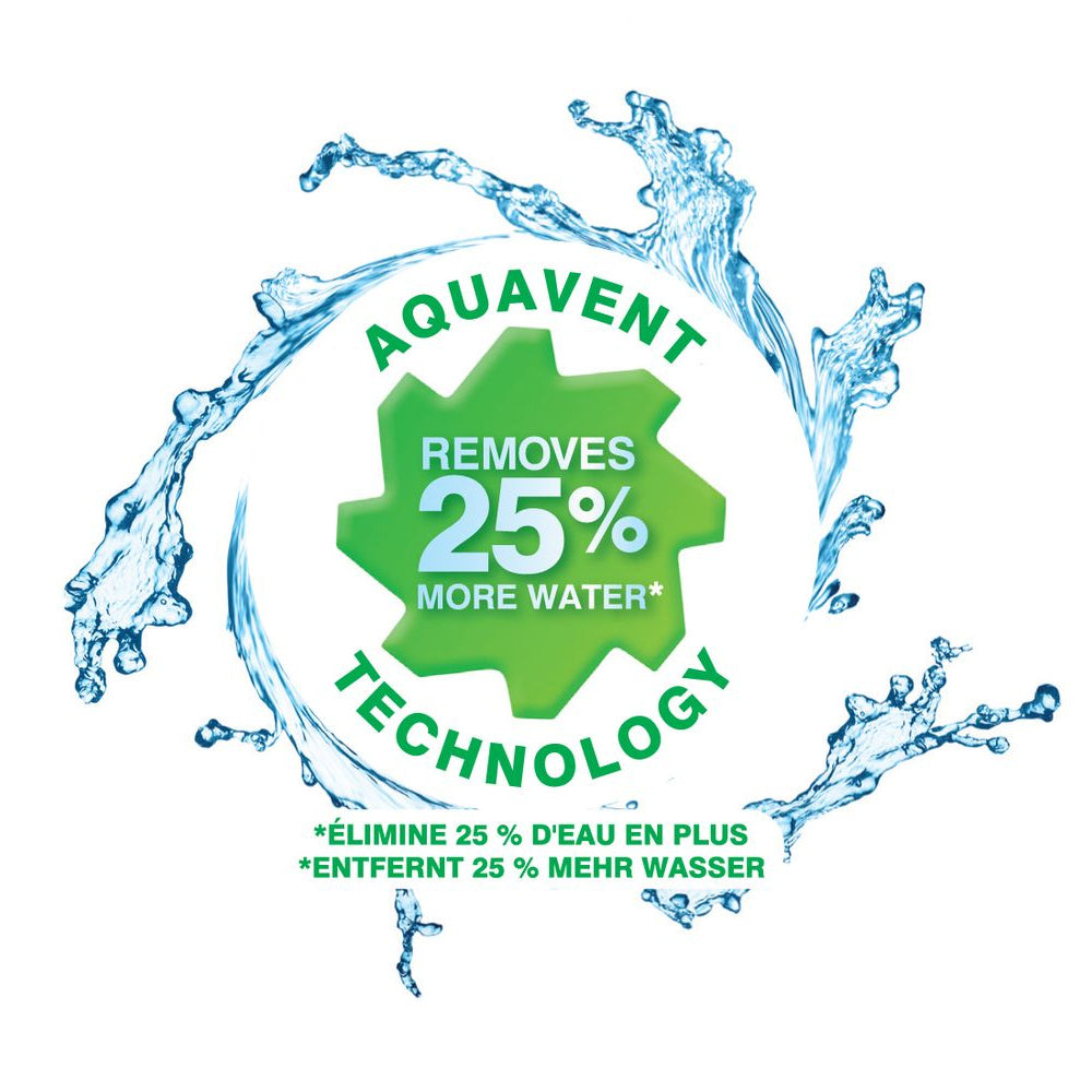 The Aqua Vent Technology removes more water. A unique basket evenly distributes the salad and enhances water removal.
