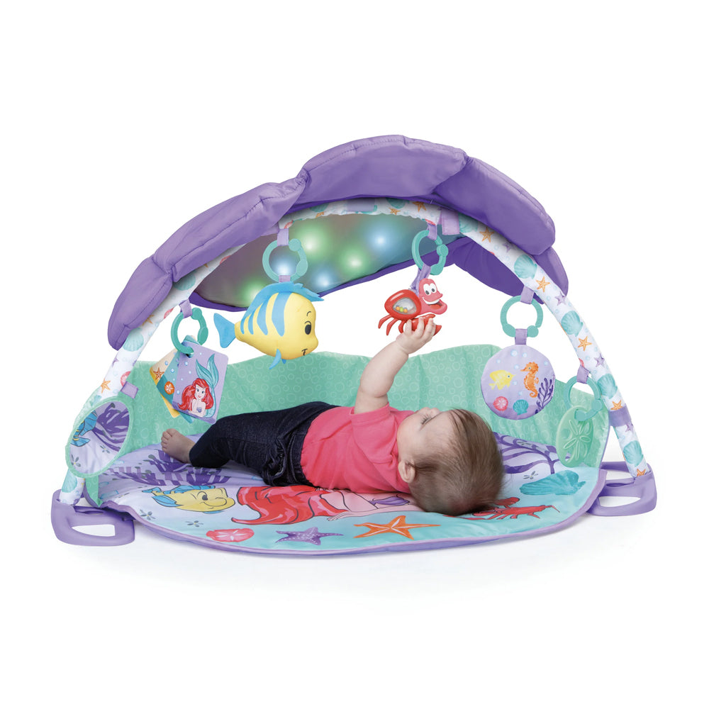 - Disney The Little Mermaid Ariel Gym Lights Up: Baby will enjoy a bioluminescent light show under the rainbow seashell canopy! Twinkly lights will captivate and create an immersive experience