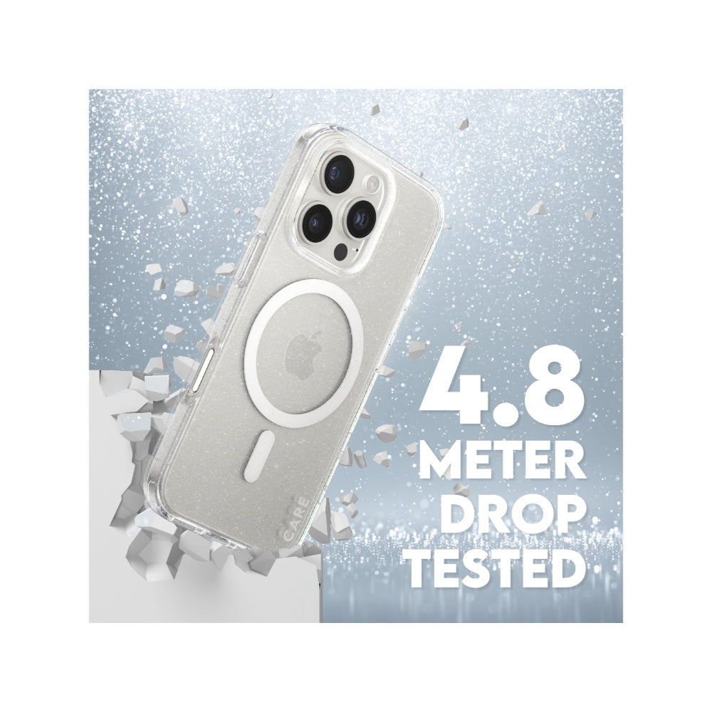 The PanzerGlass CARE MagSafe Case for Apple iPhone 16 Pro Starlit offers exceptional protection for urban adventurers. With military-grade drop resistance up to 4.8 meters and crafted from 100% recycled plastic, this slim yet rugged case is designed for wireless charging and MagSafe compatibility. Enjoy enhanced camera protection, scratch and shock resistance, and guaranteed anti-yellowing for lasting clarity. It's the perfect companion for any lifestyle, ensuring your phone stays safe and stylish in any situation.