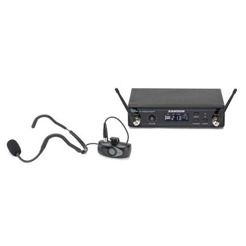 AIRATX Fitness Headset system offers frequency-agile UHF wireless freedom via the world's smallest clip-on transmitter, which places high definition sound, an internal rechargeable battery, and 300' of reliable performance in a device that fits in the palm of your hand. It also features a water-resistant condenser microphone and double ear headset ideal for fitness instructors and other high-energy performers.