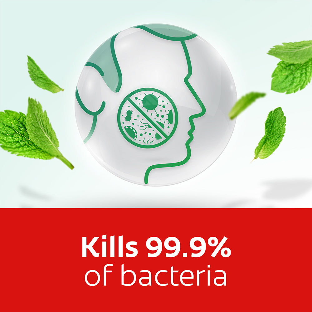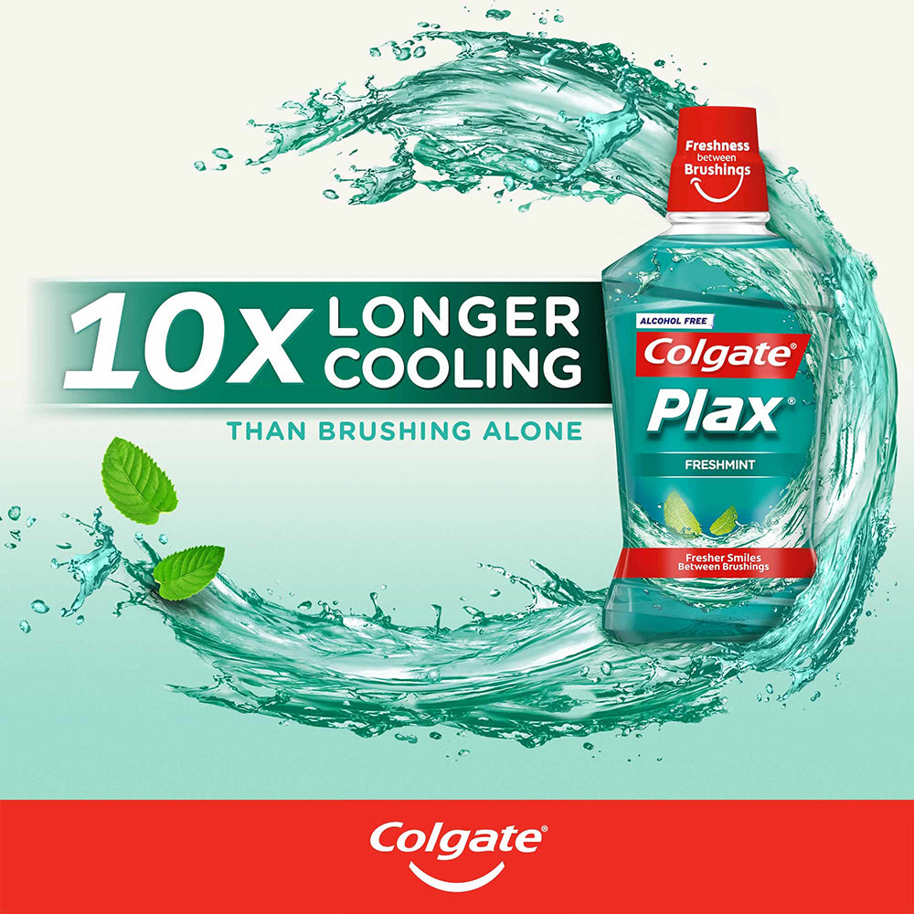 Colgate Plax Mouthwash Freshmint kills 99.9% of germs.