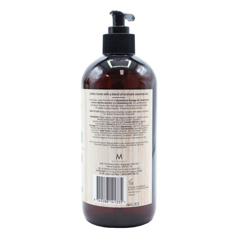 Soften hands with a blend of aromatic essential oils. A delicate, soap free blend of Australian Orange Oil, Australian Lemon Myrtle Extract and Rosemary Oil, this antibacterial handwash leaves skin feeling clean, refreshed & comfortable.