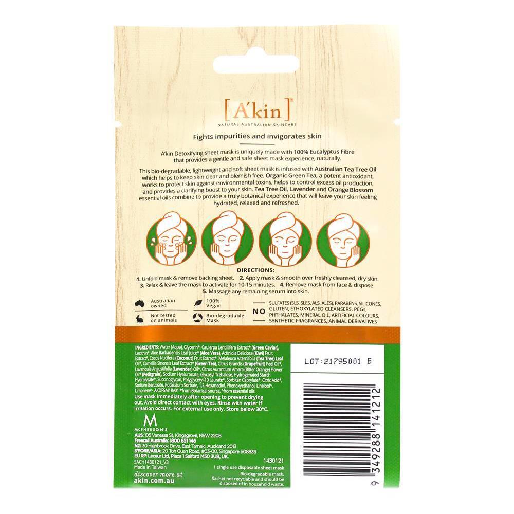 Akin 20ml Face Sheet Mask Detoxifying Australian Tea Tree Oil