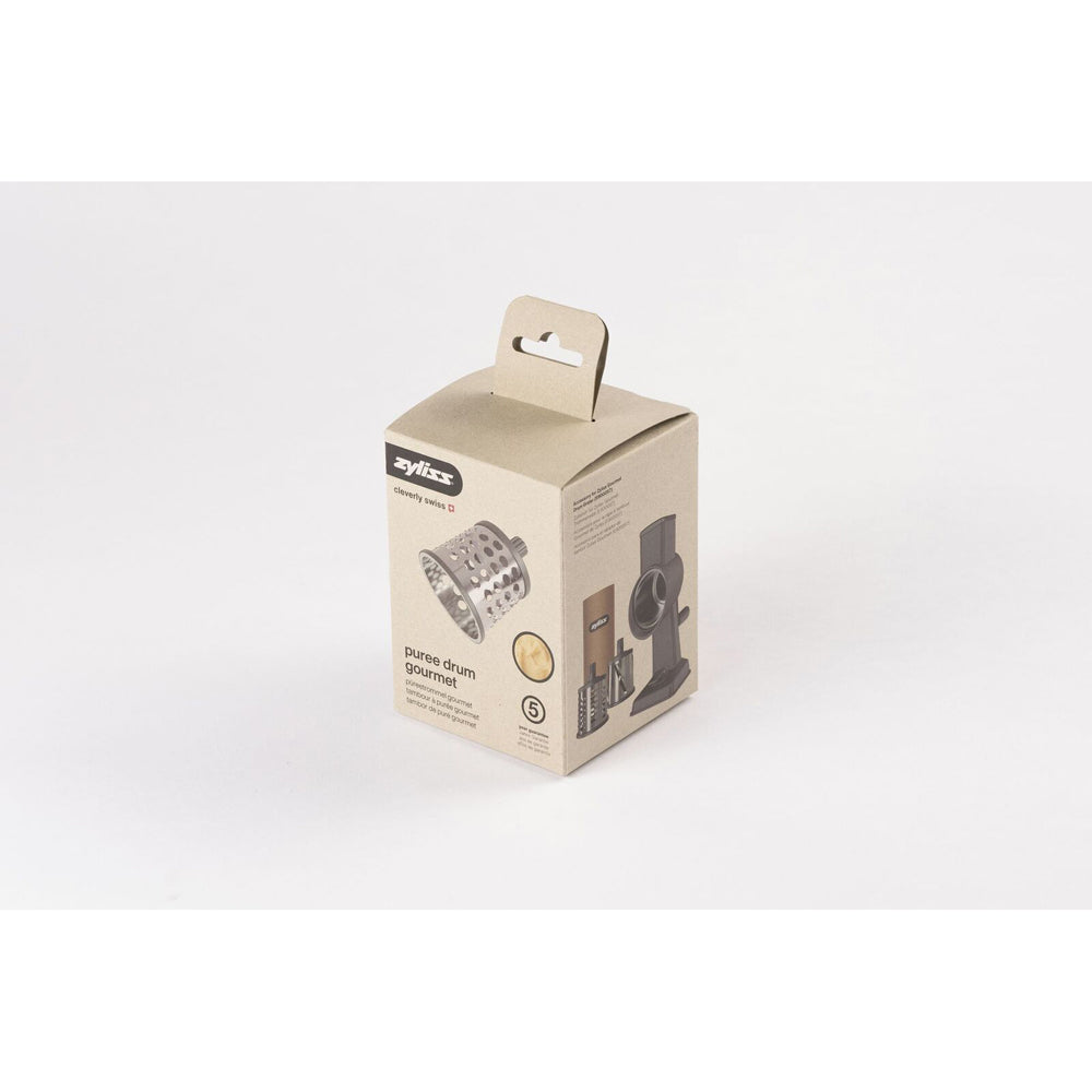 The Puree Drum Gourmet is a valuable addition to the Gourmet Drum Grater. With it, cooked food such as potatoes, carrots and other vegetables can be turned into Puree in no time at all, highlighting just how versatile the Gourmet Drum Grater can be. Zyliss. cleverly swiss.