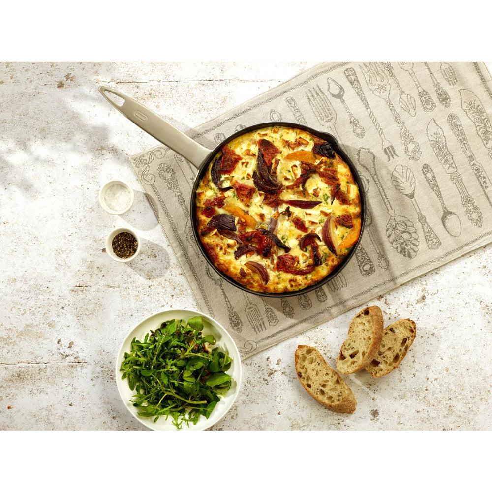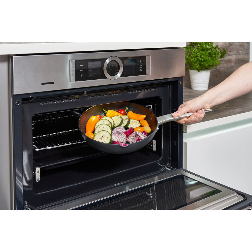 - The matt stainless steel handle has a comfortable grip and is oven safe up to 230°C/450°F.