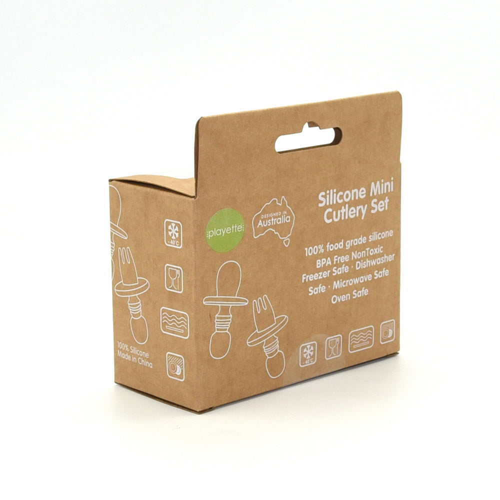 Playette Silicone Mini Cutlery Set. Suitable for ages: 4+ months.