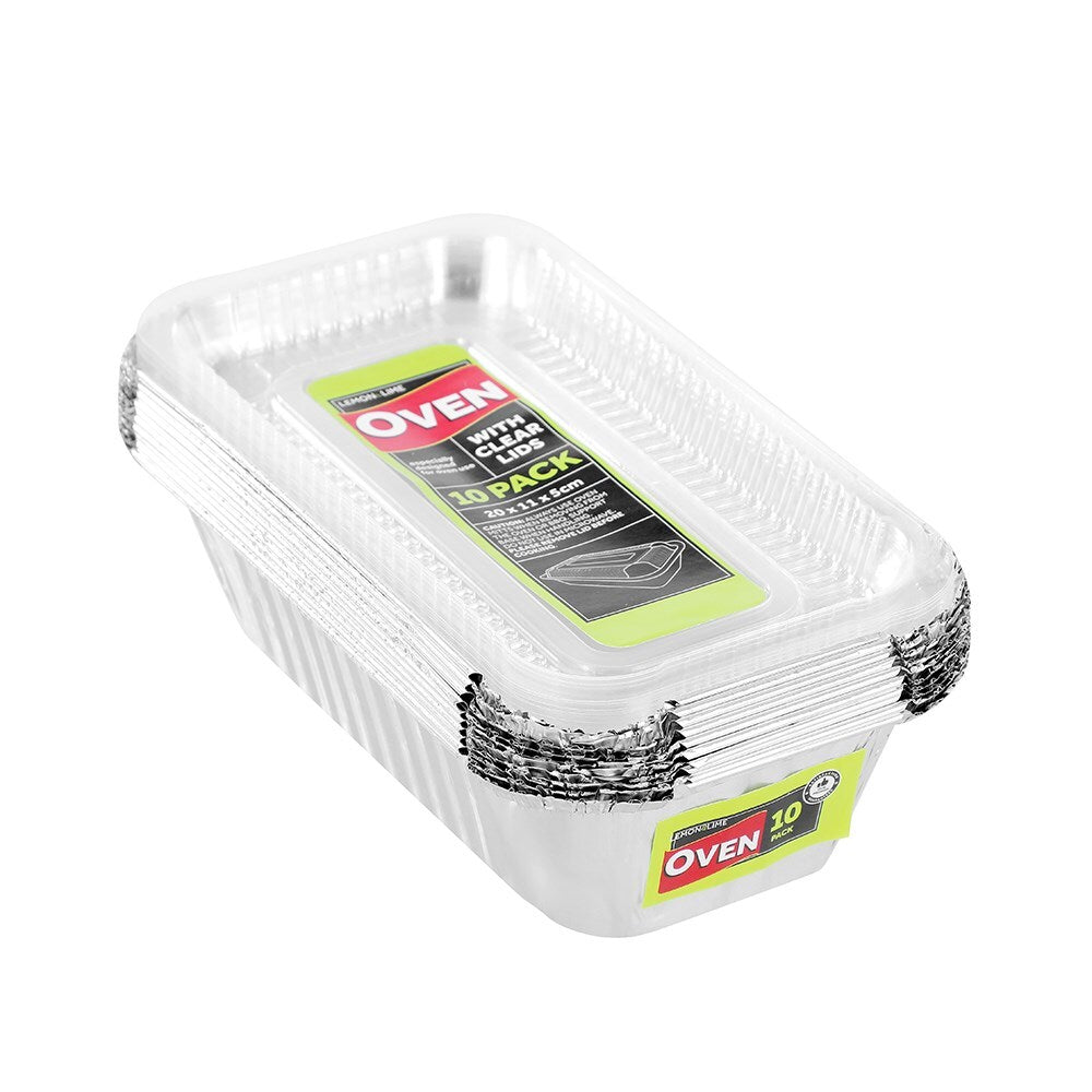 10pc Lemon & Lime 20x5cm Baking Foil Tray Rectangle w/ Plastic Lid