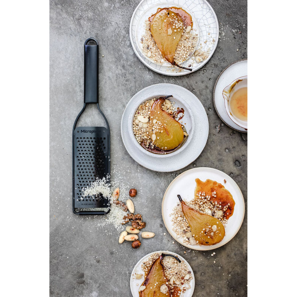 The Black Sheep Coarse Grater, by Microplane creates larger texture grating of all types of hard cheese, carrots, coconut, nuts and ginger for savoury and sweet dishes. The Coarse Grater is ideal for preparing ingredients for hot and cold dishes from quiche, pasta sauces and hearty casseroles to soups .