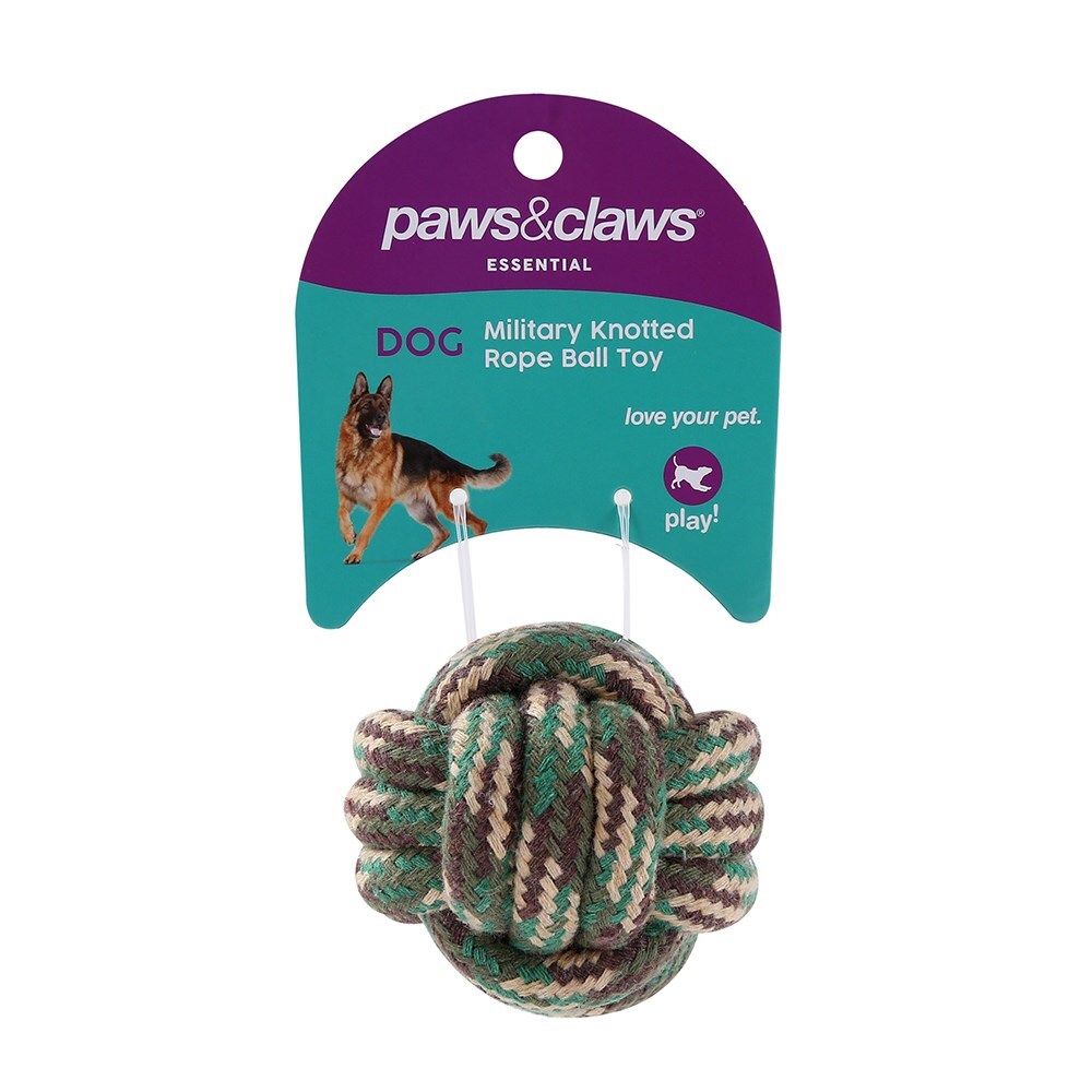 1x Paws & Claws Military 6cm Knotted Rope Ball Toy Assorted