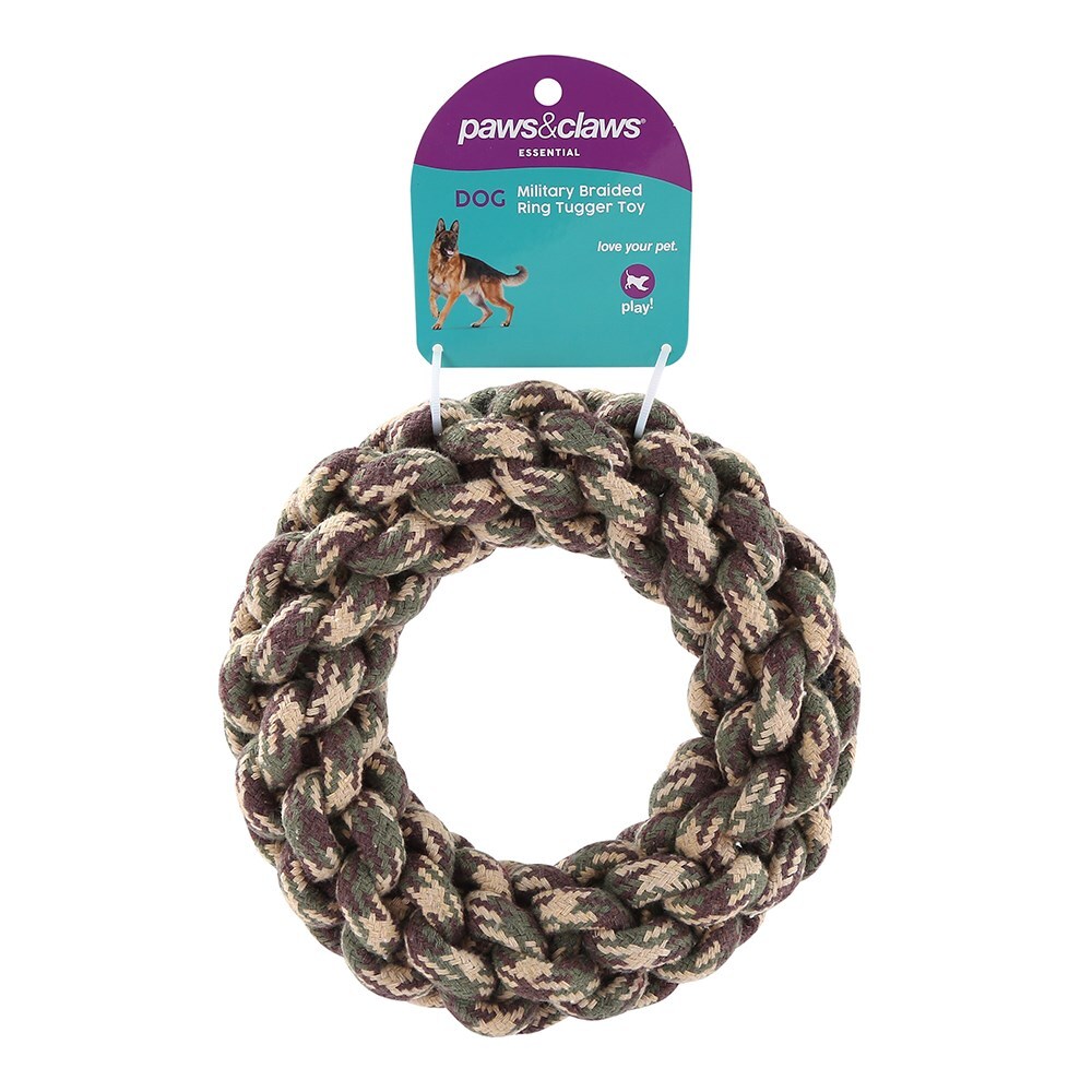 1x Paws & Claws Military 20x4cm Braided Ring Tugger Toy Assorted