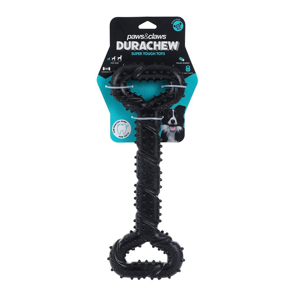 Calling all of the toughest chewers around to try our Paws & Claws Durachew TPR Tugger. Coming in two assorted colours, this tugger toy is designed to withstand vigorous chewing and will not disappoint. Satisfying your pet's instinct to chew, this toy will keep your pet occupied for hours. Plus, it's multi-textured design works to clean your pet's teeth and massage their gums as they chew.