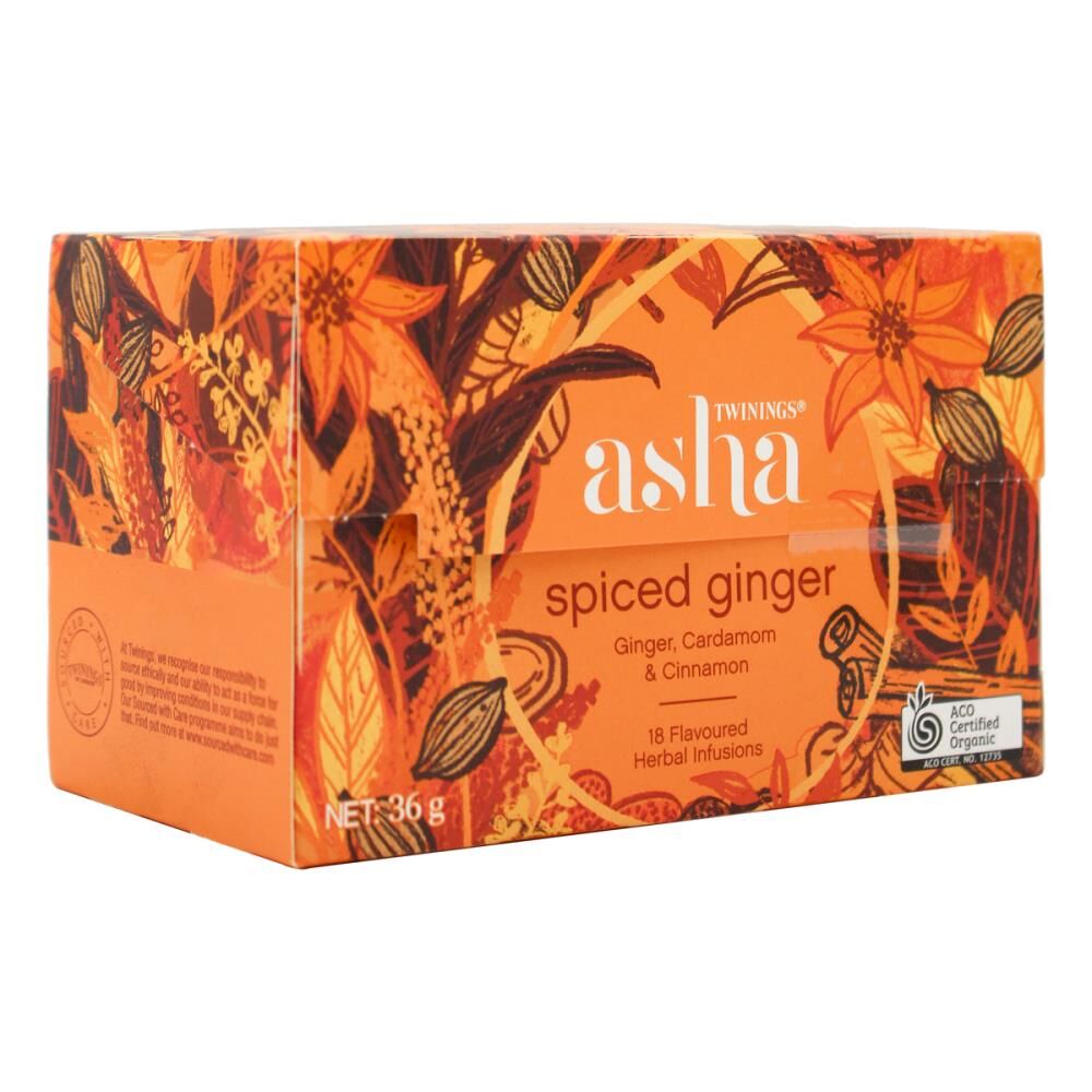 18pc Twinings 36g Asha Spiced Ginger Cardamom & Cinnamon Herbal Infusions
